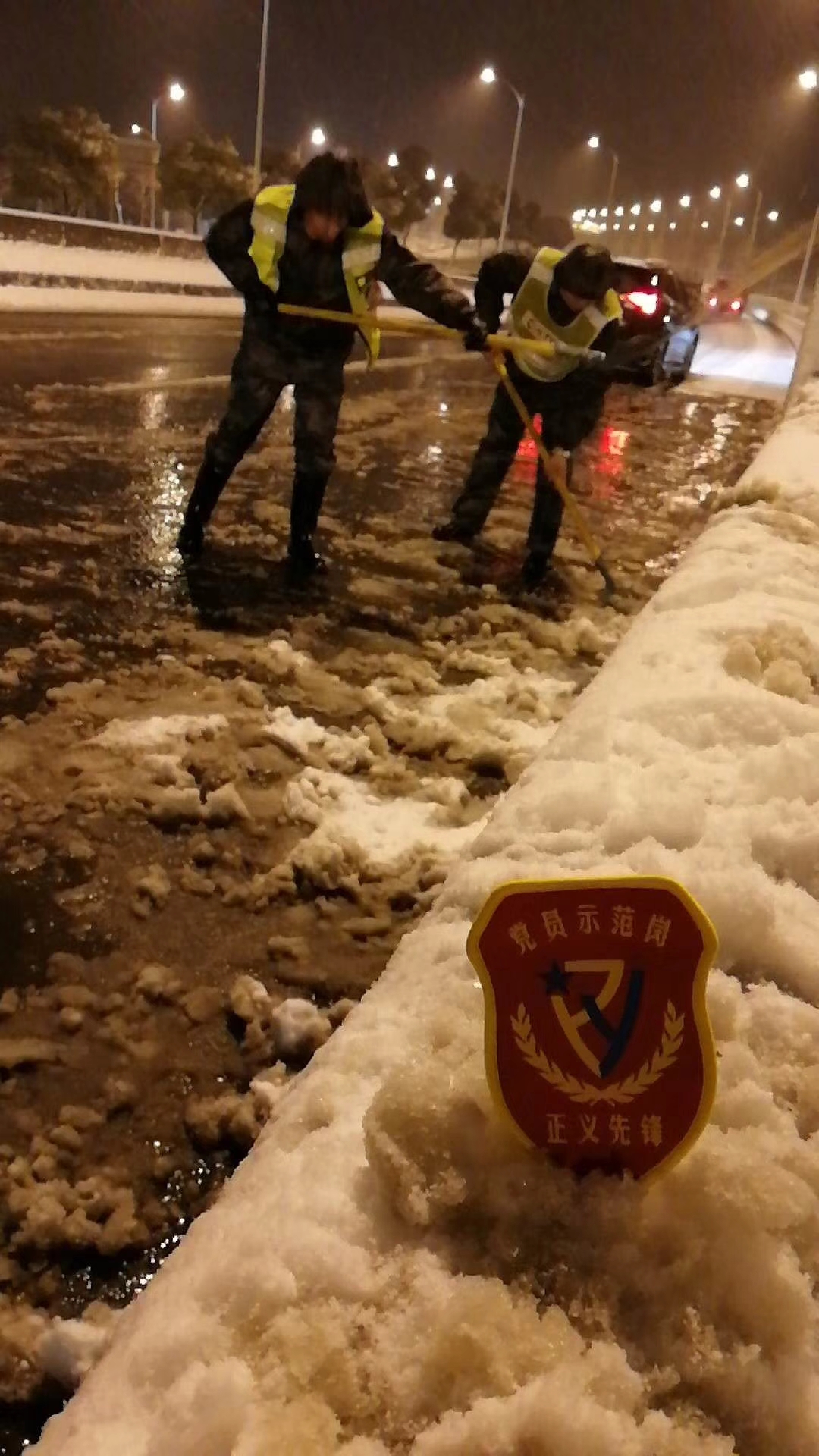面對暴雪和冰凍的雙重考驗,保安公司黨員不畏艱難, 32名黨員在黨小組組長的帶領下,從25日晚上8點至凌晨8點,在張家港大橋、北門路大橋等5座大橋上有條不紊地開展撒鹽、掃雪工作,經過12小時的奮戰(zhàn),路面積雪基本清理完成,道路交通恢復通暢。