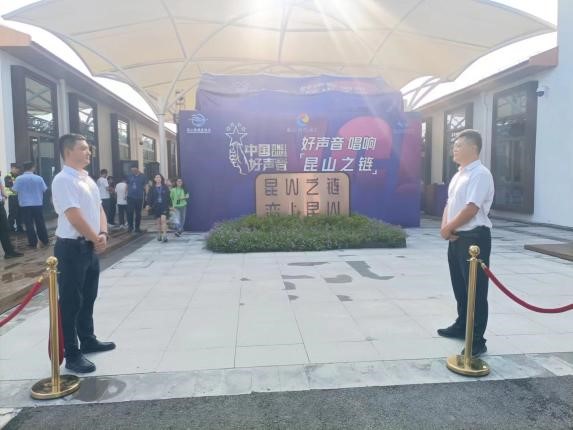 2023年8月18日,安保公司下屬保安公司承接了錦溪顧家浜中國好聲音(昆山之鏈)安?;顒?,本次活動保安公司出動了42名精通安保賽事的安保人員,其中公司主要負責人、業務負責人等骨干全員到位,為保障此次活動順利開展,保安公司制定活動專項方案,設組劃區確保活動現場的秩序安全。