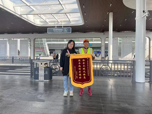 11月9日下午,保潔員李菊英在昆山南站門廳公共衛生間洗手池旁撿到一個黑色女士手抓包及相關工作證件,詢問周圍無人認領后,第一時間將手抓包妥善保管,并上報給項目經理。項目經理通過工作證上信息聯系到失主,當時失主已坐車前往無錫,于是雙方立即約定歸還時間和地點。于11月12日上午9點,保潔員李菊英在昆山南站門廳處親手將手抓包歸還給失主陳女士,陳女士在確認包內物品完好無損后,對保潔員及相關工作人員表達了誠摯的感謝并送上錦旗。