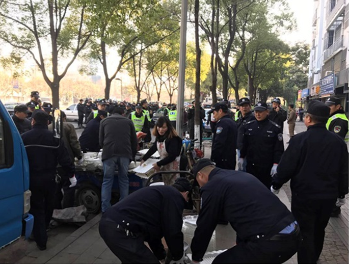 2月13日,保安公司共派出20名保安員配合城管大隊及相關管理部門,對亭林街道片區開展了專項整治工作。