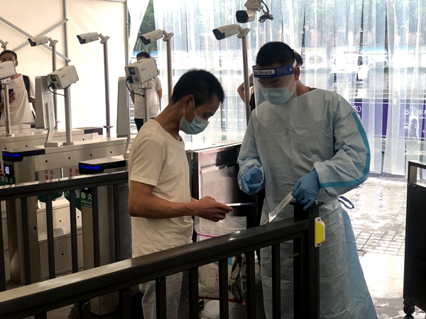 自疫情爆發(fā)以來,安保公司全面出擊,30名青年團(tuán)員組建“青年防疫突擊隊(duì)”,在昆山南站、昆山站、陽澄湖站三大入昆站點(diǎn)開展疫情防控工作。落實(shí)專人負(fù)責(zé)自動測溫儀監(jiān)測,發(fā)現(xiàn)高溫人員,進(jìn)行手持測溫槍復(fù)測,復(fù)測高溫的移交交通局現(xiàn)場人員并由交通局人員帶至留驗(yàn)室進(jìn)行二次復(fù)測及隔離轉(zhuǎn)運(yùn)工作;對進(jìn)出站人員查驗(yàn)健康碼、行程碼,綠碼予以通行,發(fā)現(xiàn)黃碼、紅碼,協(xié)助其重新填寫或查驗(yàn)行程軌跡。確認(rèn)黃碼、紅碼的,報交通局并帶至警務(wù)室進(jìn)行復(fù)查工作。